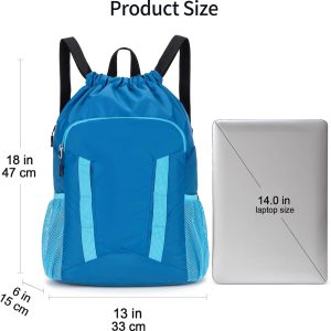Gym Drawstring Backpack String Bag – 15” x 17” Sports Gym Bag for Kids Waterproof Swimming Beach Shopping Yoga Bag