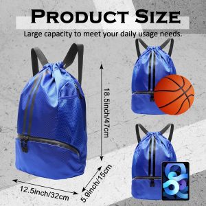 Sports Drawstring Backpack, Gym Bag with Water Bottle Holder Pockets, Shoe Compartment, Waterproof Pocket, Drawstring Bag for Women Men